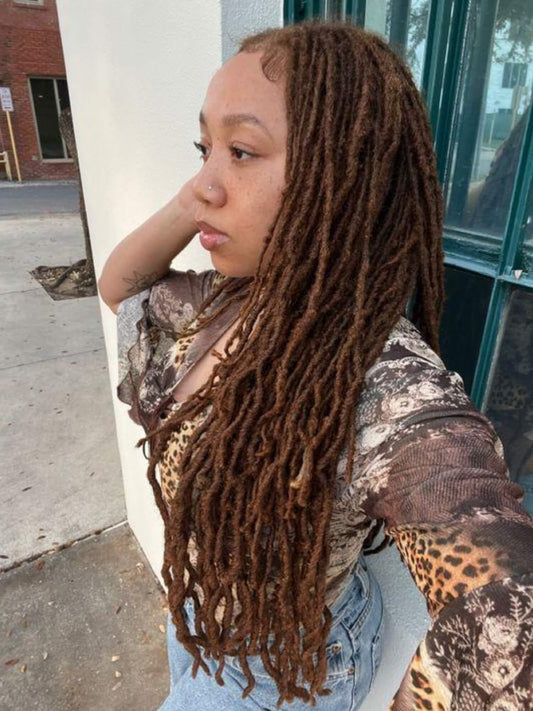 #30 Caramel Brown Color Anwi Textured Human Hair Loc Extensions